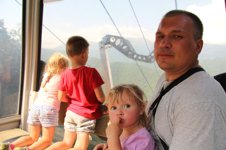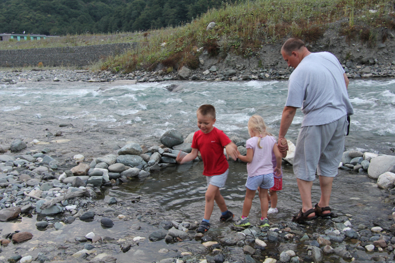 1. Красная поляна (были два раза). Не знаю сколько денег было украдено при строительстве красной поляны и олимпийских объектов, но на оставшиеся суммы сделано все просто на отлично. Первый раз на красную поляну попали случайно. Ехали на форелевую ферму, промазали с поворотом и пришлось чесать до красной поляны. Первое впечатление - попали в немецкий городок. Еще впечатлило огромное количество очень ухоженных мамочек с колясками.Так как кассы на подъемник работают только до шести часов вечера, решено было вернуться сюда на следующий день. Это мы сделали. Поднимались мы на высоту 2200 м. Ощущения захватывающие, дети были в восторге и просили покататься еще. На каждом участке подъема мои дети и муж сладкоежка поглощали мороженное))) Можно было подняться еще выше (в открытых кабинках), но мы опоздали. Девочки, это не передаваемое ощущение! На обратном пути прорвались к горной речке (перелазили через забор) и в обуви ходили по воде (всепозволяющая мамаша)
