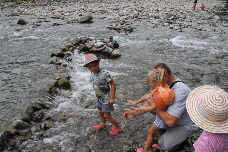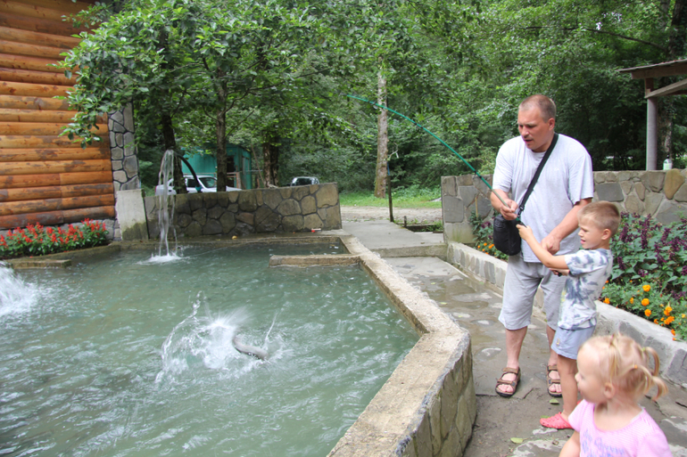 Забыла написать, между нашими поездками мы все таки посетили форелевое хозяйство. Сын поймал целых две рыбины (но рыба там конечно сама чуть ли не в руки прыгала), искупались там же в горной реке (кто в сем был, так как купальники мы не захватили). Вода в реке была теплее, чем в море (удивительно).