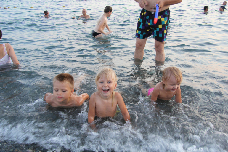 Море было теплым, а главное чистым. Народа было меньше чем "Килек в бочке" и мы всегда находили место прямо около воды. Дети, привыкшие плавать в первый наш отдых не вылезали из воды))) Папа наш, как обычно, не смотря на проживание большей части жизни в сибирском регионе, заходил в воду поскуливая от прохлады (он всегда так в воду заползает).
