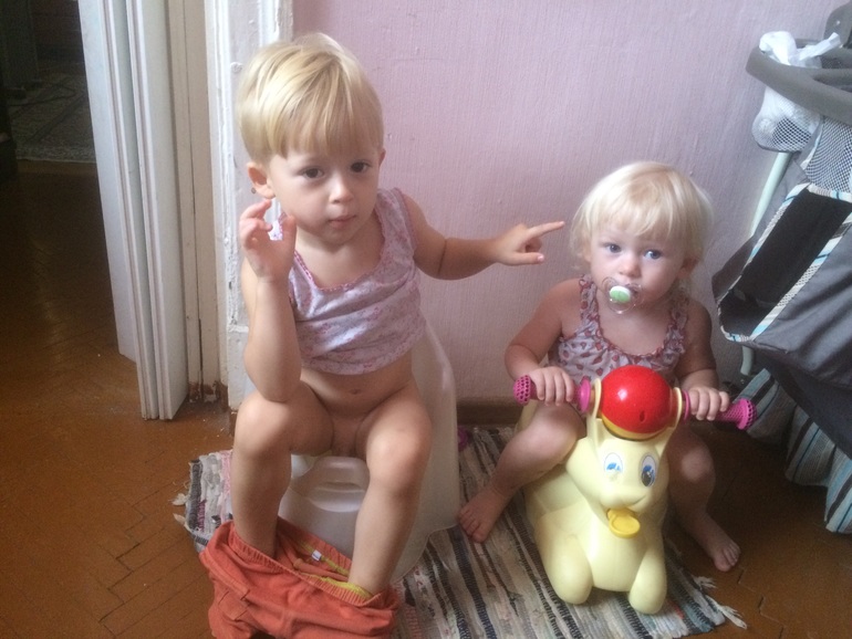 Детки многодетных семейВот когда Сашка садиться на горшок ,Василиса обязательно несется и тоже садиться !сидит и выдавливает !как же без нее то ! И если у него шумит в горшке то тоже тужиться чтоб у нее тоже так было !😄😄😄