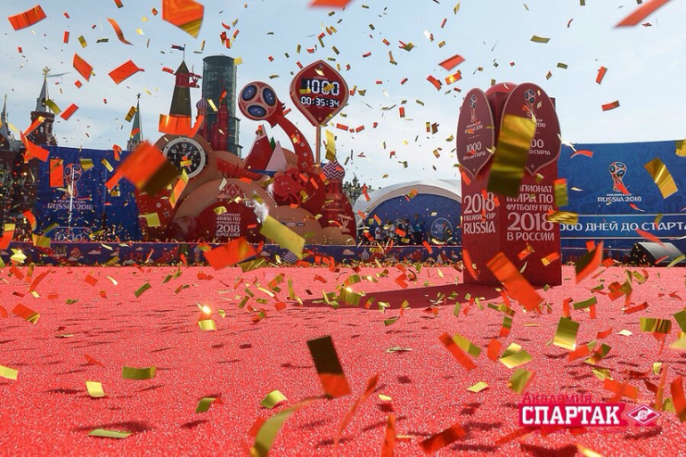 А вот и фотографии о празднике на Красной площади, посвященном празднованию тысячи дней, оставшихся до старта ЧМ-2018 в России. Приятного просмотра!