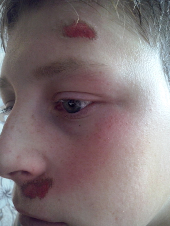 Оксана,такое бывает...и ее такой конфигурации ссадины...Знаю,так как сама лет 17 назад после просмотра очередной олимпиады решила ковре исполнить обязательную или произвольную программу))звезданулась в кувырке так,что на лбу как у индианки был такой же кружок как у вашего сынульки,а второй на подбородке..Надо мной полшколы ржали ... Но в советские времена родителей так не трясли с проверками и заявлениями)) Терпения вам!!все заживет)
