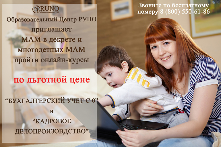 Делюсь/рекомендую/советуюОбразовательный центр "РУНО" в рамках социальной программы приглашает молодых мам в декрете и многодетных мам на обучение по дистанционной форме, по любому направлению со скидкой 60% от базовой стоимости.
