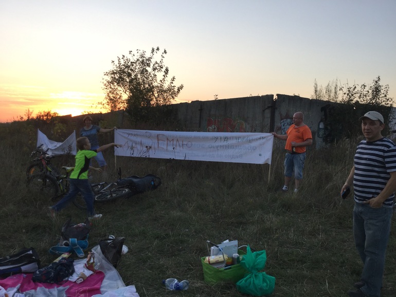 Это наш транспарант с митинга, на обратной стороне написали, что земля выдана) ттт ждем документы