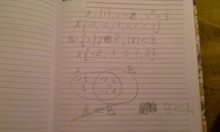 Это легко, объясните просто ребенку, что нужно подобрать числа, соответствующие условию, и расположить их в кружочке. В первом будут находиться числа -3,-2,-1,0,1,2,3; во втором - числа -2,-1,0,1,2. Перечисление - это когда просто после А= и В= в фигурных скобочках перечислены в рядочек все эти числа, только через точку с запятой. Кружочки нужно нарисовать один в другом, потому что часть чисел - общая. Только за пределами внутреннего круга В в круге А будут находиться числа 3 и -3. Верно второе высказывание. Z - это целые числа. Думаю, что в учебнике в теоретическом параграфе есть материал, просто нужно найти нужные строки. Все получится, не переживайте.