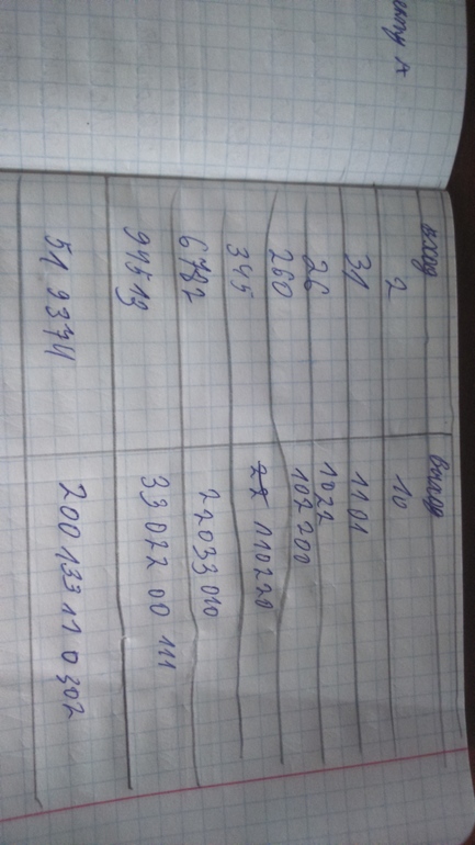 по-моему, это преобразование по системе исчислений. Бывают двоичные, восьмеричные,..... То есть им дают число, а они должны его перевести в эту систему исчисления. В учебнике есть таблицы, посмотрите, какая подходит. Например дают 645. Ишем по таблице 600это Х, 40 - у, 5- я. В итоге складываем х + у+я, получаем ваш выход