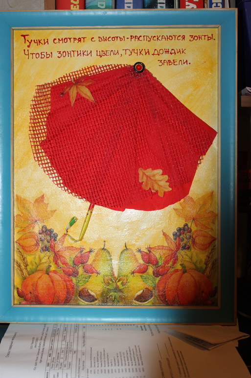У нас тематический конкурс "озорные зонтики" из любого материала. это не осенняя поделка .....