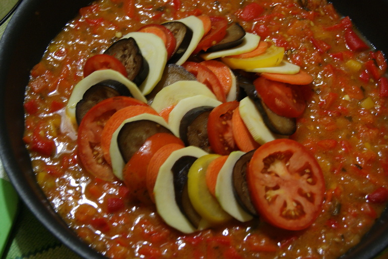 Если в духовке есть режим нагрева сверху, лучше на последнем этапе использовать его. Или на 5 минут в конце приготовления поставить рататуй под гриль.