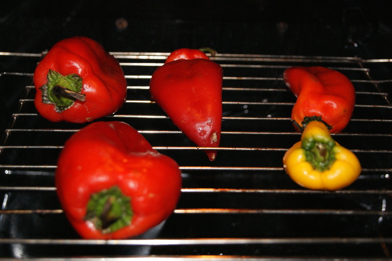 Сначала нужно приготовить соус пеперад - основу для овощного рагу. Разогреть духовку до 220 градусов. Перец смазать растительным маслом, выложить на противень или фольгу и запечь до готовности (около 20 минут). Шкурка должна местами почернеть и вздуться.