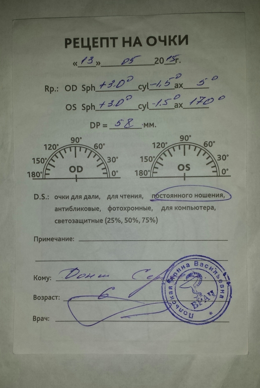 Я тоже не разбираюсь, нам только сказали носить очки и проверяться каждые 3 месяца, ну и на упражнения для глаз каждые пол года ездить. Могу вам фото рецепта на очки показать, если нужно
