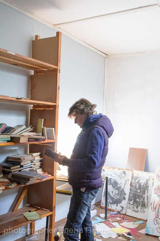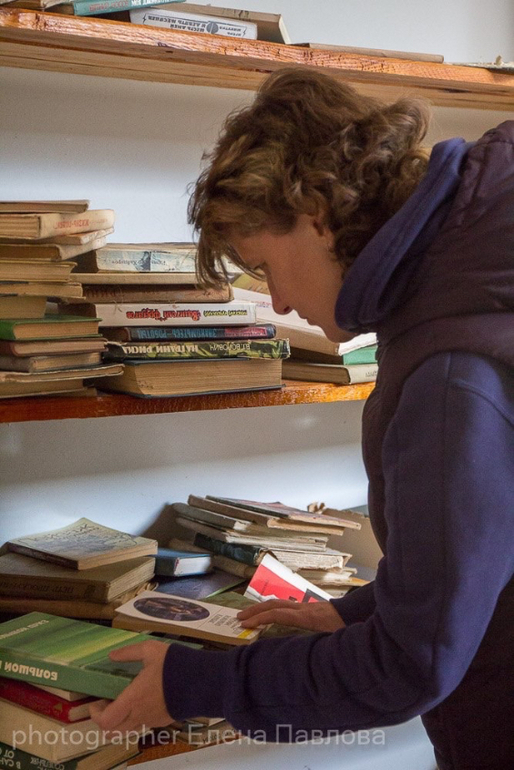 Пока мы рассматривали книги , к нам пришёл охранник , ( он охраняет наверно что - то на территории старого лагеря)