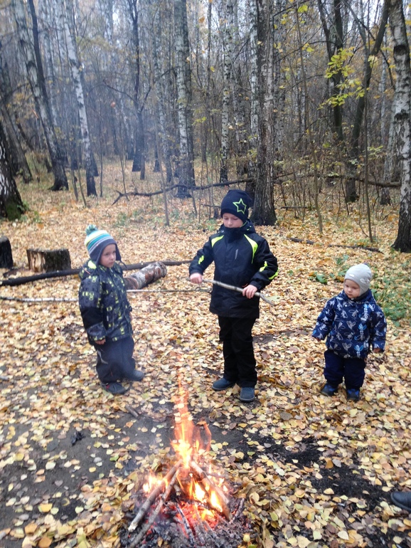 Вчера несмотря на болезнь, повела их гулять:) в лес решили сходить все вместе, папа нам костёр разжег:)