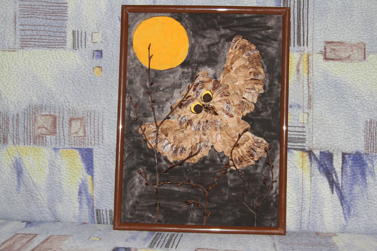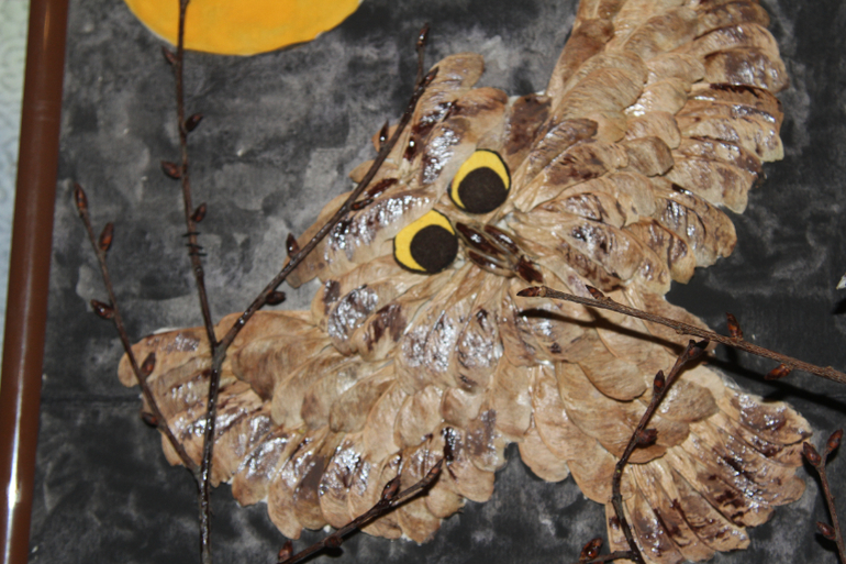 Это для Наташи:) Летучки от клена, веточки чего-то, картон, гуашь.