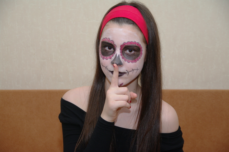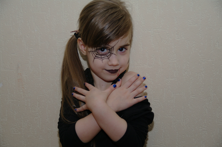 По задумке я и себе хотела сделать макияж Хеллоуинский, но реально "НА СЕБЯ" времени у меня не хватило!!!!!