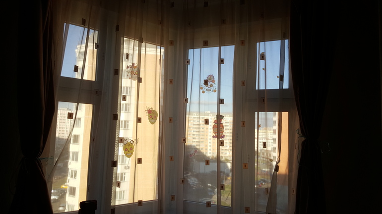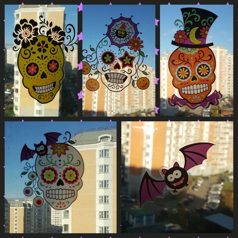 Наклейки на балконное окно: (куплены в Фикс-прайсе)