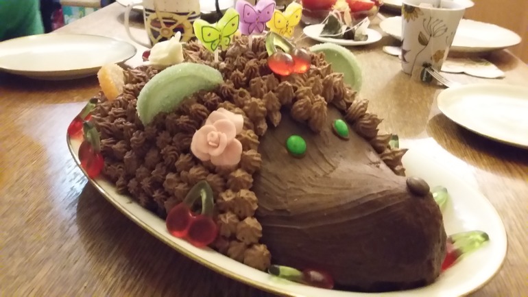 а когда сели пить чай то к нам на стол приполз вот такой ёжик: