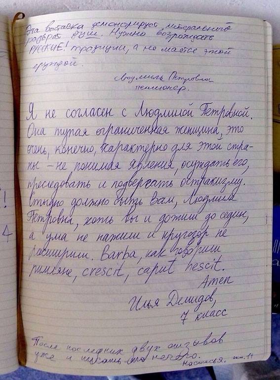 Мальчик тоже написал свое мнение, при этом осудив и оскорбив старшего человека и всю страну покритиковав мимолетом.