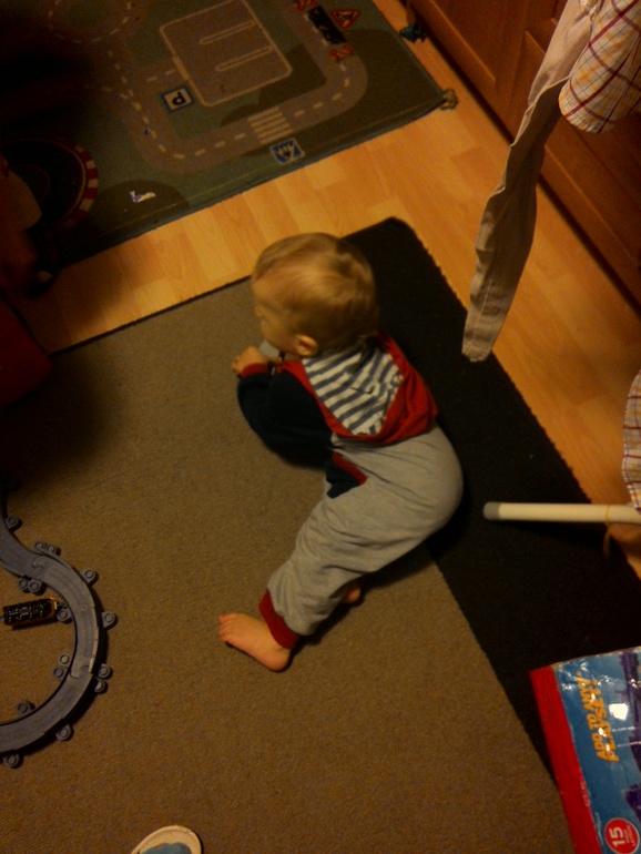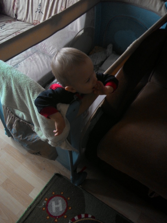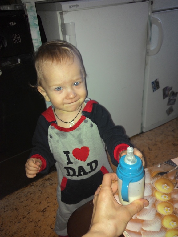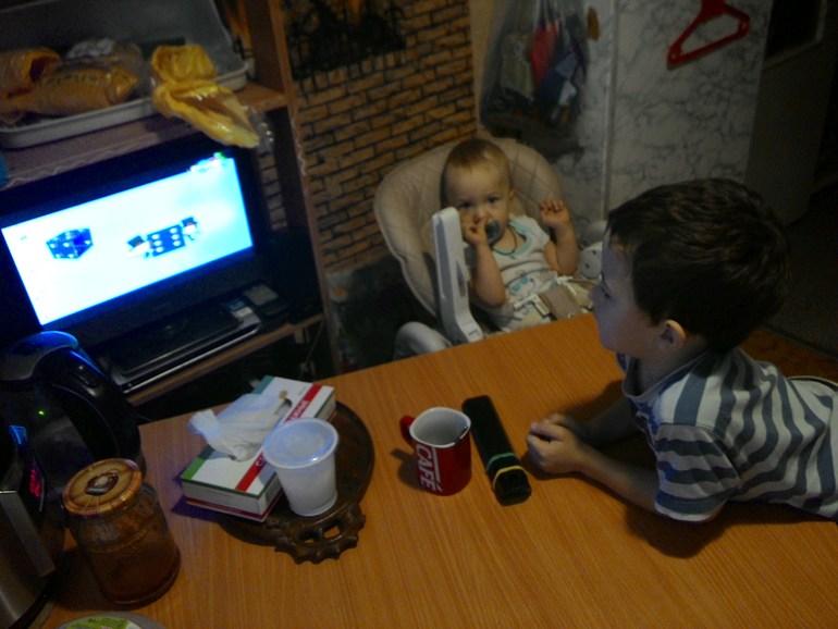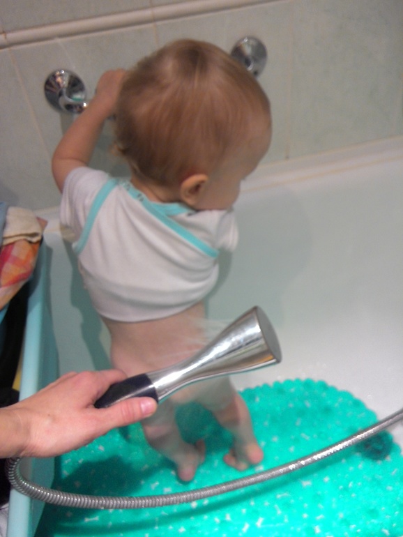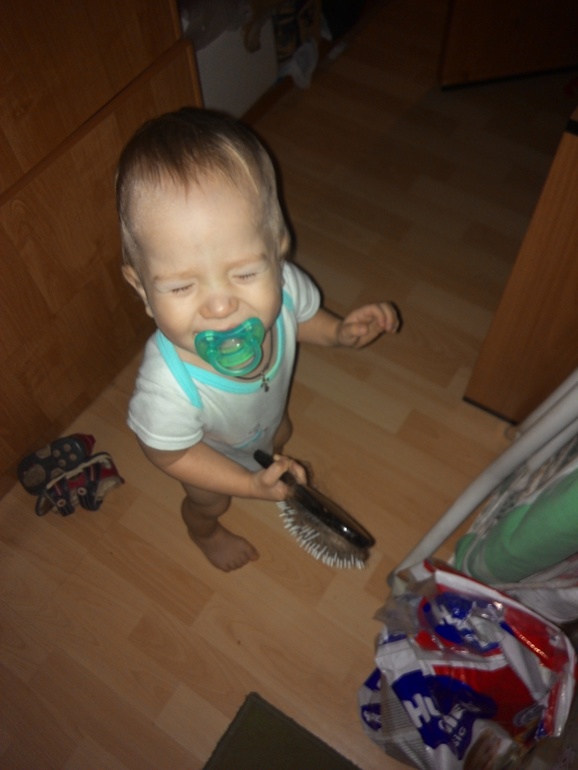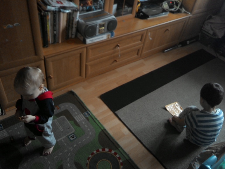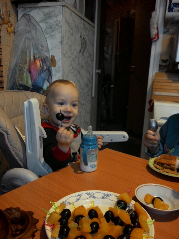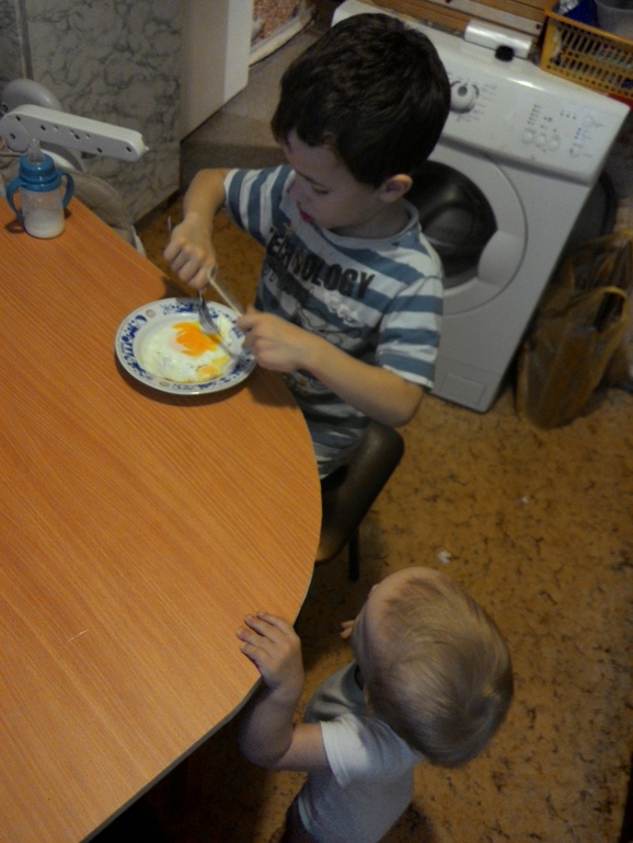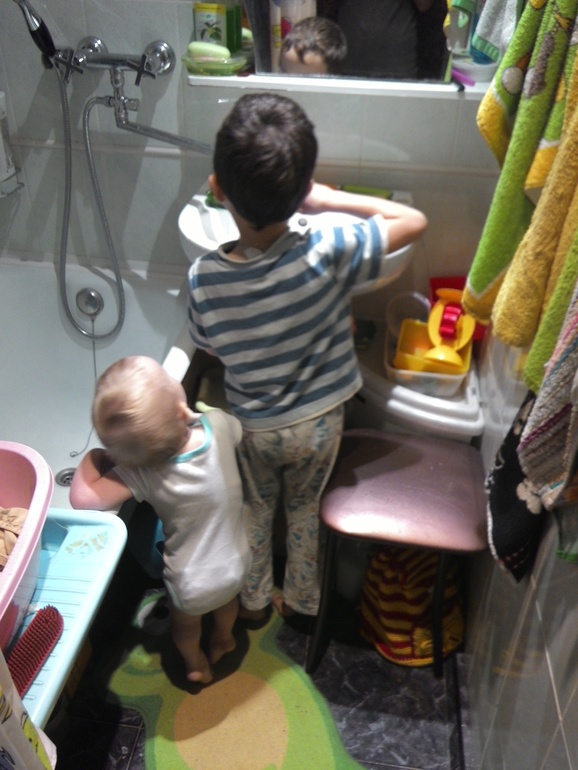 Пока кладу еду,Женька идет умываться,а младший набирается опыта)))