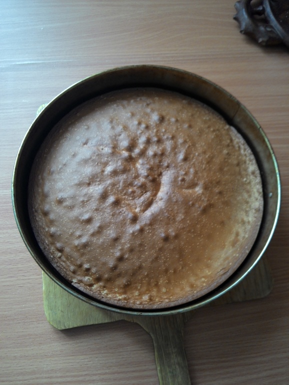 Бисквит готов))Разрезала на три коржа,обернула пленкой и в холодильник