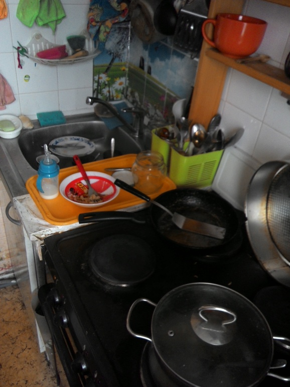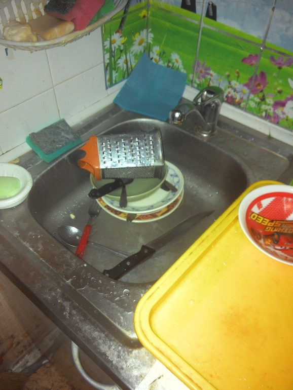 Прихожу домой,все спят))И муж тоже)))Даже фоткать некого)))Разве что остатки грязной посуды в раковине,которую надо домыть)))
