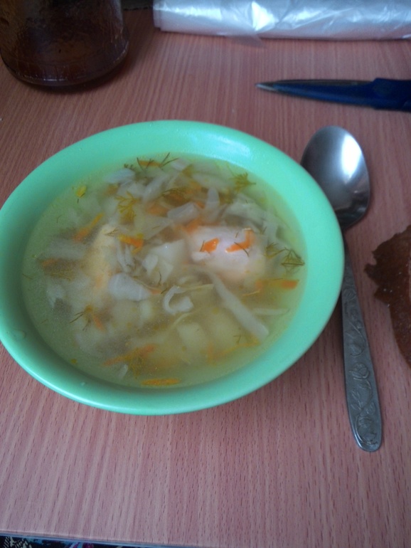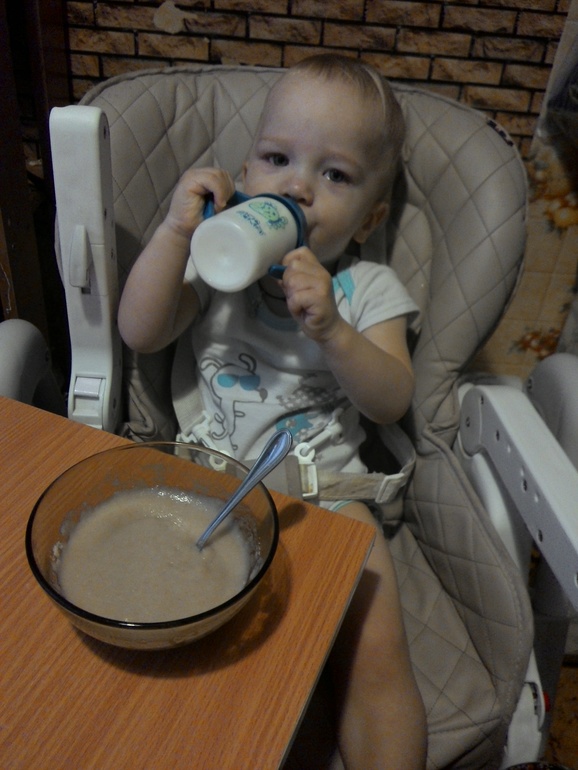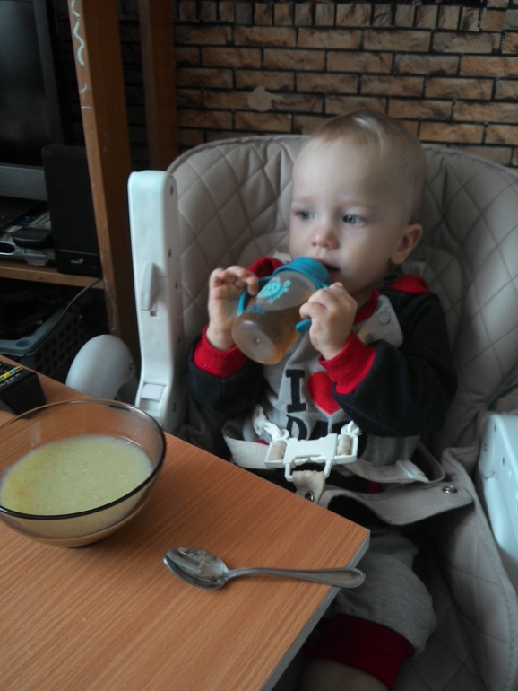 Кормлю мелочь.Тот же суп,только сблендереный.Зубы есть,с вилки ест.Но суп любит пюре))