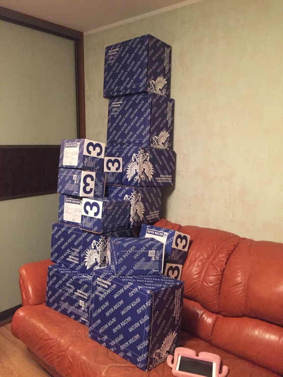 Ну нет, конечно, не в таком кол-ве)) 3-4 максимум-после своих девочек вещи отдавала в разные руки и то там были коробки 2 и 2 пакета) Это ж все дотащить нужно до почты еще!