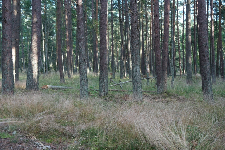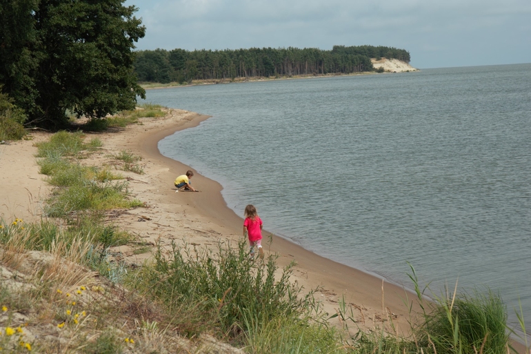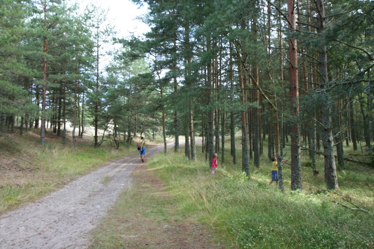 Куршская коса - это заповедник. Гуляя, мы видели повсюду следы диких зверей. А когда девчонки уснули, и я осталась с ними в машине, муж с сыном пошли к песчаным дюнам. По дороге меж деревьев они увидели пасущихся оленей.