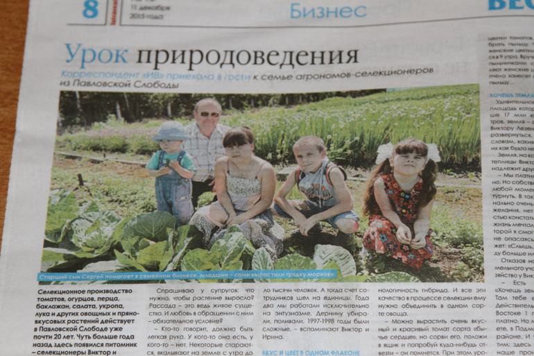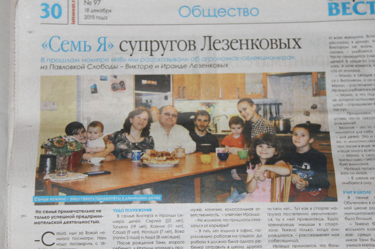В прошлом номере «ИВ» мы рассказывали о семье агрономов-селекционеров из Павловкой Слободы - Виктора и Ирину Лезенковых. Около 20 лет они занимаются селекцией семян овощей. Но семья примечательна не только успешной предпринимательской деятельностью.