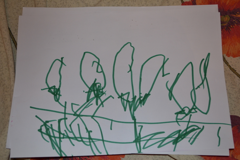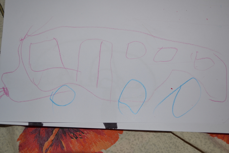 Егорка - железную дорогу, а нарисовал он поезд с рельсами