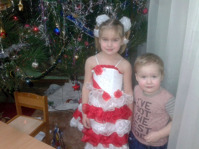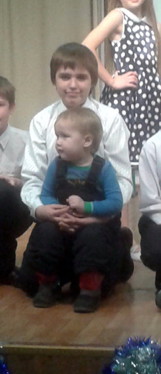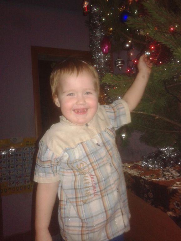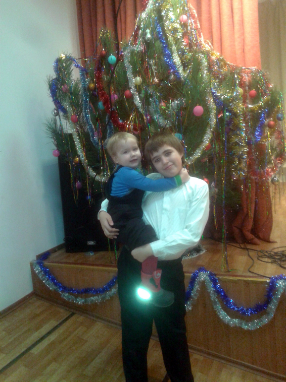 Елка у старшего. Андрюша смотрел представление и аплодировал братику