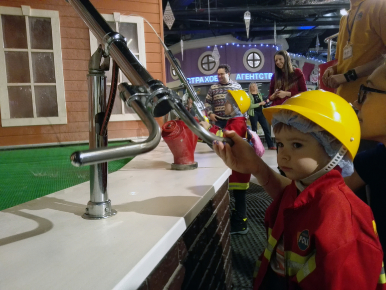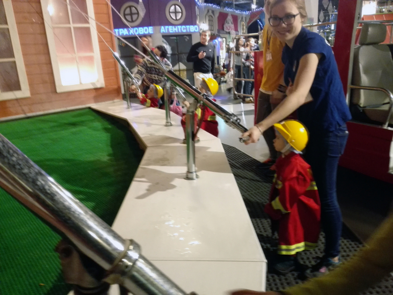Папа тоже подустал. Сначала было тихо - утром ведь приехали, машин на парковке мало, внутри народу никого. Мужу хорошо, он не любитель шума-гама. Детям скучновато было, город детей был пока тихим, но к обеду все проснулись и яблоку негде было упасть! Вованчик - наш шустрик домашний - скромничал и дичился. Санек бегал по всем станциям как у себя дома - второй раз как никак. Ксюха хотела самостоятельности, но за ней по пятам следовала Наташа, которой всего 7 и она тоже немного скромняжка:)