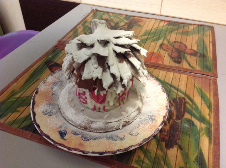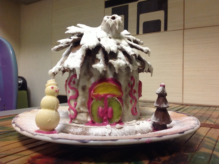 Меню большой семьиДевочки, вот первый раз попробовала испечь пряничный домик, по рецепту Ирины Хлебниковой. Собралась печь уже поздно, кондитерские магазины не работали (праздники), так что окошки и дверь пришлось лепить из того, что было.... Ну и цвета в глазурь только из свеклы ))) дети активно мешали-помогли )))