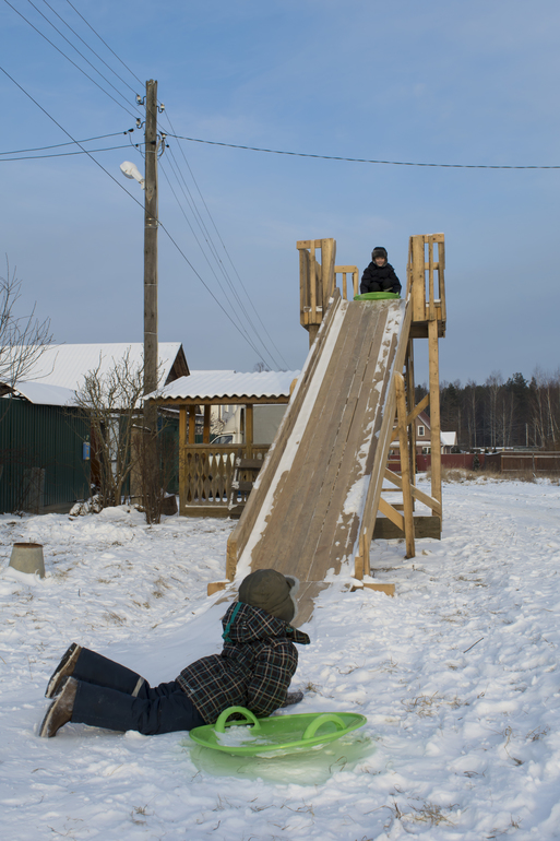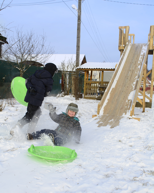 Была у нас на весь поселок одна единственная горка на естественном склоне. Так местные власти догадались внизу баскетбольную площадку сделать и забором огородить. Теперь с горки прямо в забор! Вот, зато у нас сосед какую горку классную построил: