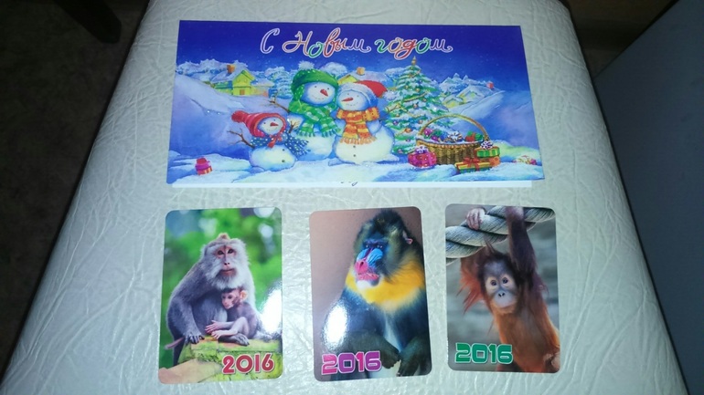 Пришла открыточка с Новым годом и пожеланиями выздоровления Илье. Так приятно! Спасибо вам семья Толкачевых из Москвы!!! И три календарика с обезъянками). Всем желаем ЗДОРОВЬЯ! Берегите друг друга!!!