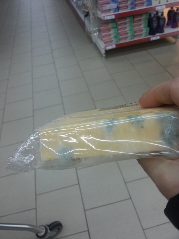 Нас, однажды продавщица пыталась убедить, что плесень на сыре - это нормально...Ага, на Российском)))) Прям глаза выпучила, говорит :"Вы чтоооо!!! Это же СЫЫЫР!!! Он и должен быть с плесенью!!" Занавес...даже не нашла, что ответить