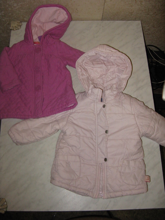 Розовая курточка на холодное лето, солнечную весну. Стеганая. Из материала, похожего на мягкую замшу. Вторая бледно-бледно розовая, на холодную весну, осень. Очень удобная, непродуваемая, горло и рукава защищены. Впереди есть нюанс - маленькая зацепка, почти незаметная.
