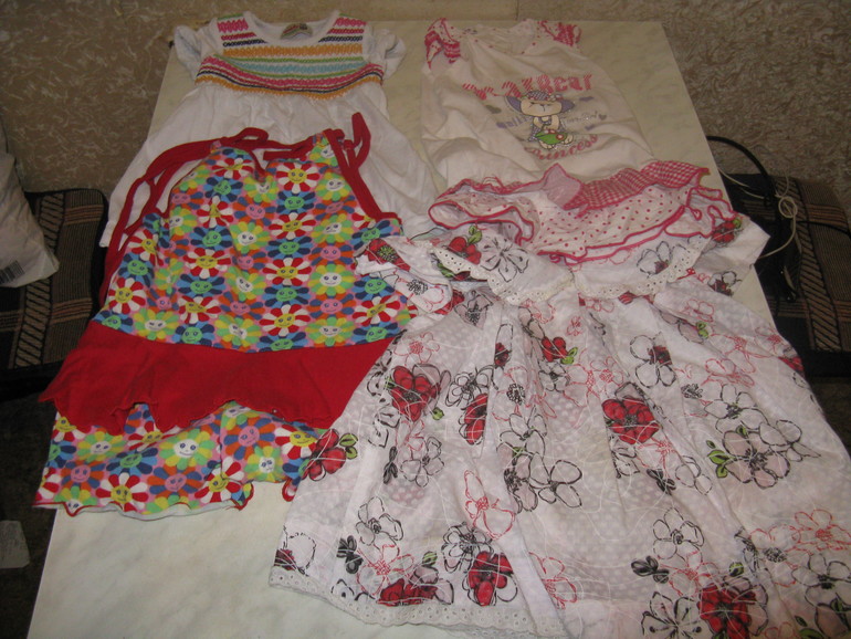 Отдам даромОтдам платья для лета, шортики, легкий костюмчик (использовали в жару как пижамку, чистая). Для девочки, которой к лету будет 1,5 года или чуть более. Третье платье как песочник, с трусиками между ножек. Второе платье "для дачи", т.к. заметила пятнышки.