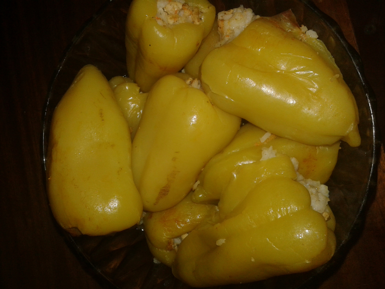 Поэтому плов был быстро замаскирован под фаршированный перец. Благо заготовка из перца у меня имелась в консервации.
