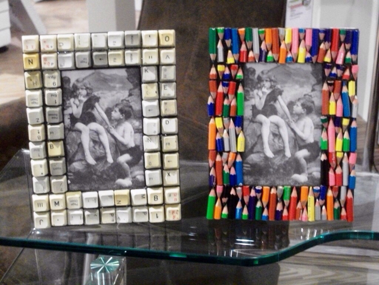Снимите с рамки стекло и покрасьте ее темной акриловой краской, дайте высохнуть. Далее наклейте на рамку шайбы, гайки, шестеренки, а может быть это будут монеты или что-то еще. Можно выложить из них узор либо наклеить в случайном порядке. Когда клей высохнет, вложите в рамку фотографию и стекло.