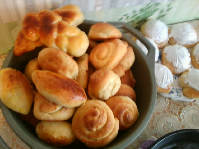 тоже покупную выпечку не берем-мы на ней разоримся,каждый по три пирога берет с собой))))Тесто стоит-через пол часика лепить пойду)))