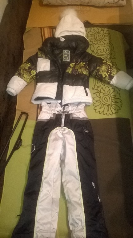 Шапка новая. Костюм пойдет как второй на сменку или иногда щегольнуть в беленьком. Состояние на 4. Куртка французская, размер стоит 5лет (на рост 106-113 я бы сказала)