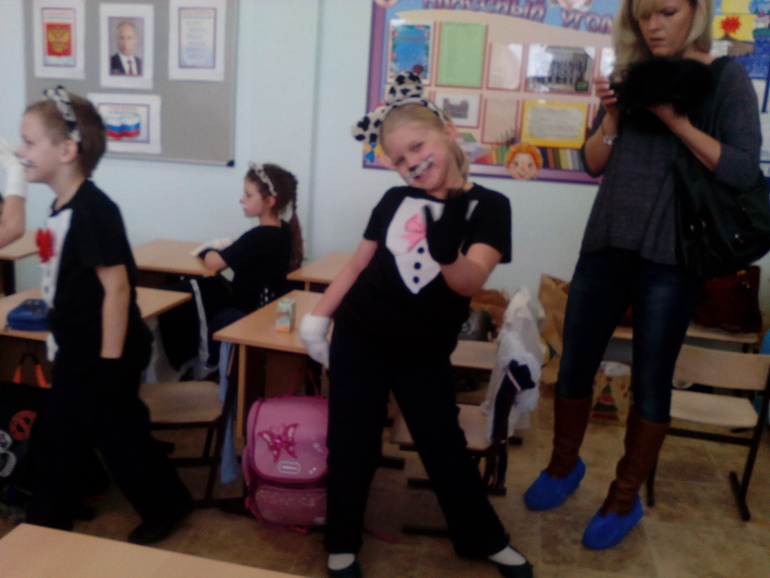 Сегодня у нас в школе была битва хоров между первачками. Наш 1г занял первое место с песней"черный кот". Родители были рады больше чем дети. А вот и мы с Машей перед выступлением