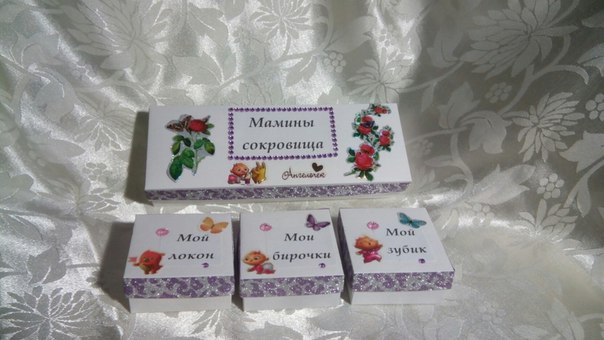 Поделки и развивашки (НЕ продажа)Оказалось, что коробочки "Мамины сокровища" пользуются в Архангельске большим спросом))) не успела выставить у себя в ВК, как сразу знакомые стали заказывать. Делаю недорого, т.к. не пользуюсь специальной бумагой, вырубкой и т.п. для скрапбукинга. Пока мне достаточно декоративных наклеек и страз. Все заказала на Сималенд Вот что получается