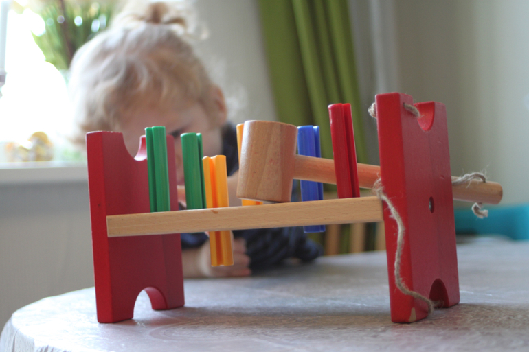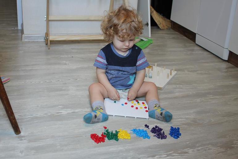 6. доска колотилка из икеи. палочки сортируем по цвету. забивает, переворачивает забивает.