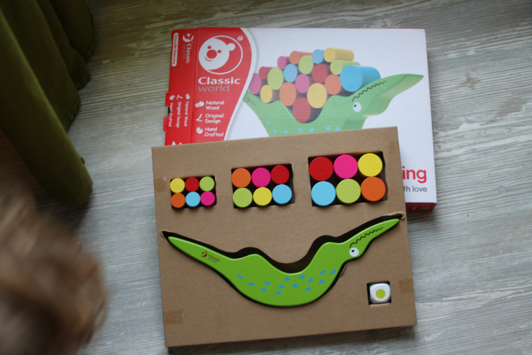 15. игра балансирующий крокодил. рассчитана на детей постарше. нужно ставить бочонки так,чтобы крокодил не упал, Вася пока просто строит пирамидки.