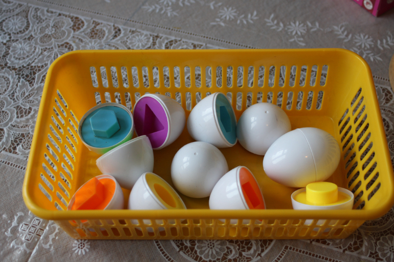 9. цветные крышки от агуши. сортируем по цветам, раскладываем в ячейки от яиц, в соответствии с цветом. купила еще магнитный жезл, пинцет и ножнички с круглым захватом для сенсорной коробки. пока используем вполсилы.