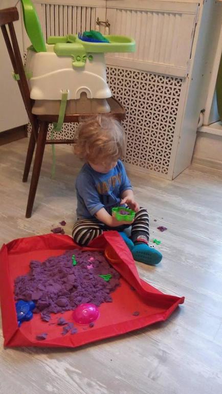 но я за ним ползаю сразу, собираю песок обратно в песочницу.