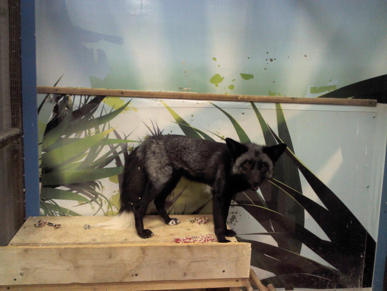 Лиса чернобурка, игривая как маленький щенок, Тимошка сней играл, но немного боялся.