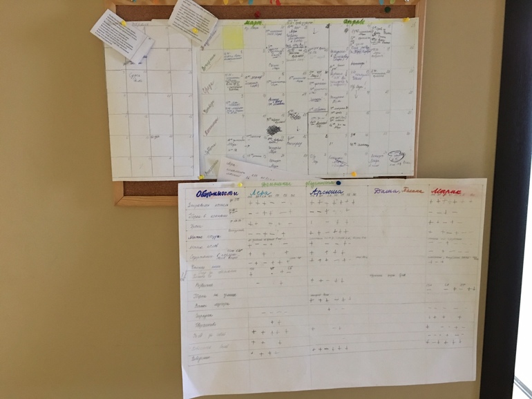 Сама таблица заполняется карандашом простым, на неделю, потом это можно стереть, и со следующей недели начать писать заново. Пыталась клеить звездочки,но видимо не очень удачные купила, оторвались вместе с бумагой.