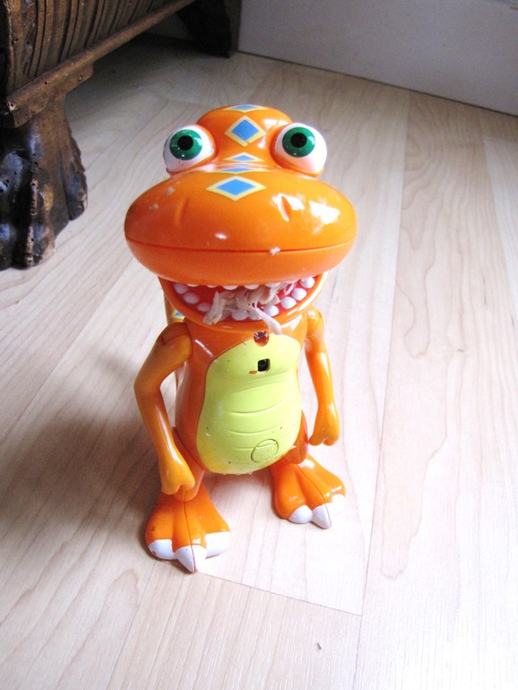 И вот купила я им Бади игрушку.Носят его,радуются,играют все время с ним и другими диозаврами.Но дело в том,что этот Бади помимо всякой чепухни кричит-я люблю мясооооо,рррр.